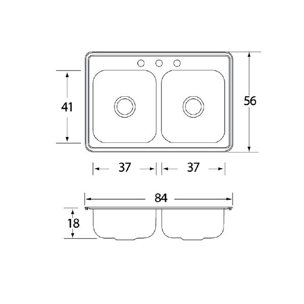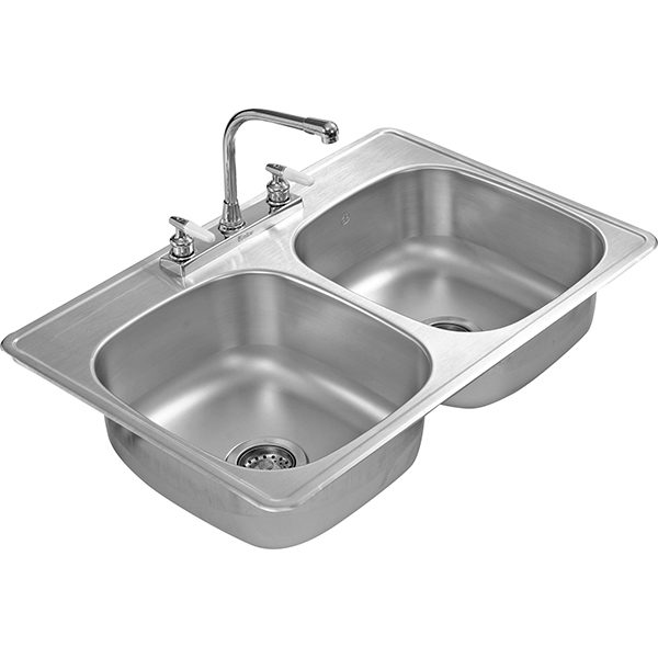 Tarja de 2 tinas con acabado satinado. Línea Clásica de empotrar, Marca EB TÉCNICA